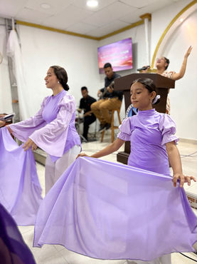 El grupo de danza de nuestra iglesia están apoyando cada domingo el culto con danzas espontaneas en el momento de la alabanza